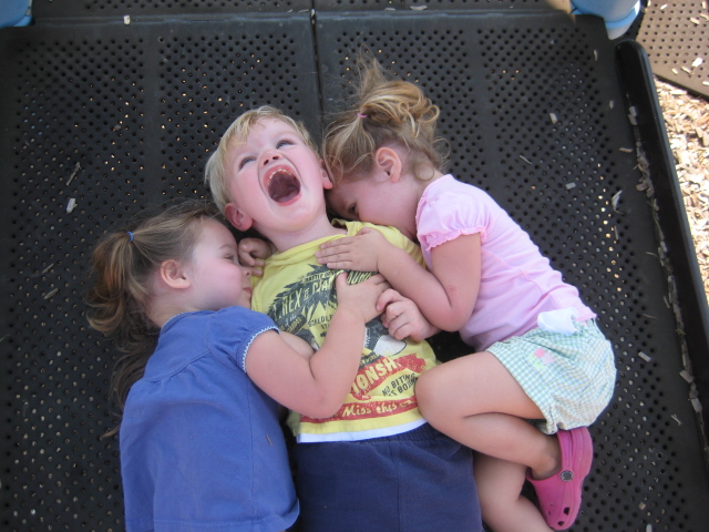 Today the girls met up with Finn and Wyatt to play. Wyatt had to take a break and Evelyn (our cuddle bug) snuggled up next to him on the ground, then Sylvia joined. How stinking cute are these pictures!?